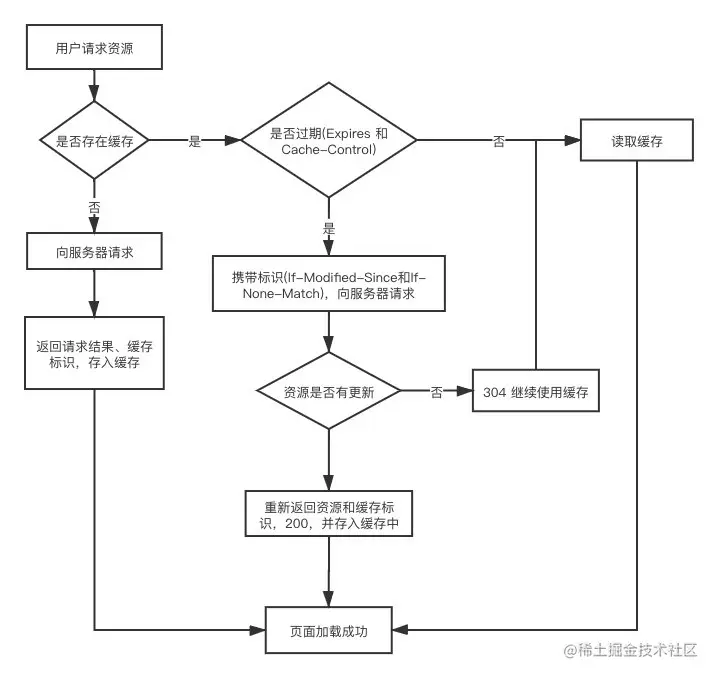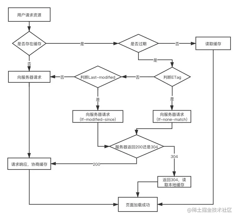 协商缓存就是强制缓存失效后,浏览器携带缓存标识向服务器发起请求,由服务器根据缓存标识决定是否使用缓存的过程。